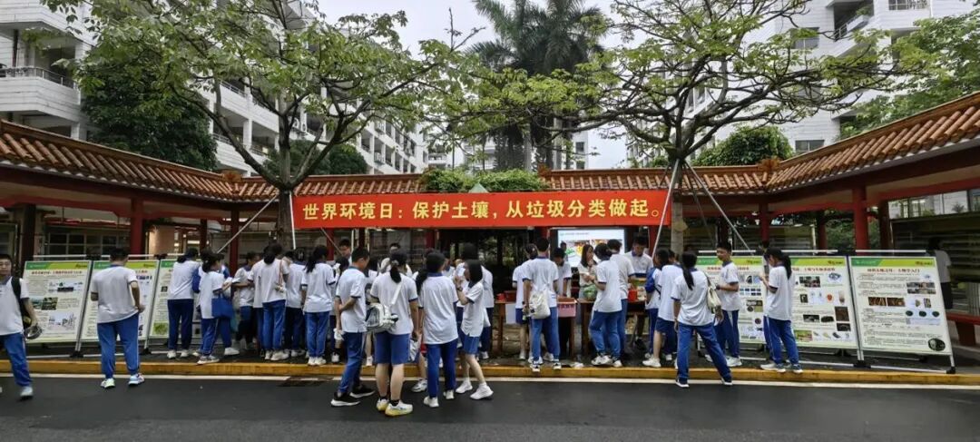 2024年6月5日是世界环境日,以此为契机,谢晓婷在黄胜琴老师和肖小亮校长的指导下,以“土地修复、荒漠化和干旱韧性”为主题,在东莞中学初中部举办了“?;ね寥郎锒嘌浴敝魈饣疃?。此次活动寓教于乐,提升了群众对土壤生态及生物多样性的认识,增强其环境保护意识,营造崇尚科学的良好氛围,取得了积极的教育效果与社会效益。