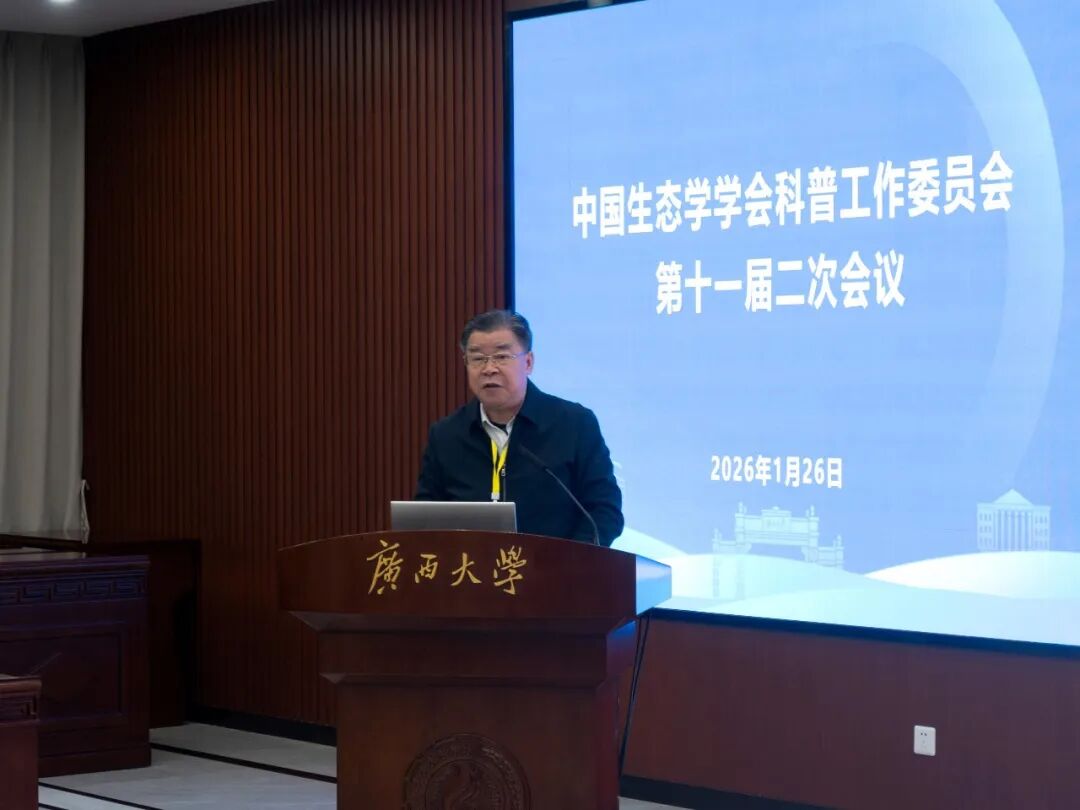 2026年1月25-28日,中国生态学学会科普工作委员会第十一届二次会议在广西南宁召开?;嵋橛芍泄аЩ峥破展ぷ魑被嵊牍阄魃аЩ峁餐靼?,广西大学林学院承办。