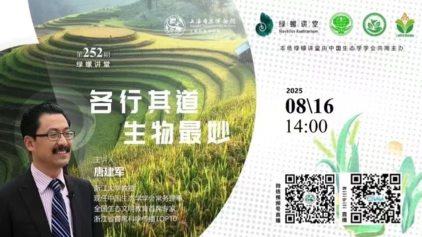 发布时间:2025-08-27 点击量:257动物与植物,既是共生的伙伴,也是微妙的对手,在环境的协奏中,他们无问尊卑,无需定义,共同吟唱着蓝色星球独有的生命咏叹调。你是否会疑问:植物不能东奔西跑,又经常成为各种动物的大餐,却没有绝迹,这是为什么呢?野火烧不尽,春风吹又生。为什么野火烧后地上长出的植物幼苗更加茁壮?动物真的是植物的天敌吗?2025年8月16日下午,第八届中国生态文明大讲坛分会场“各行其道 生物最妙”在上海自然博物馆举办。中国生态学学会常务理事、科普工作委员会常务副主任、浙江大学唐建军教授为公众做了“各行其道 生物最妙”的科普报告。唐教授以妙趣横生的语言和丰富内涵的生态案例,讲述了“动植物的生存之道”,探讨了生物多样性与自然