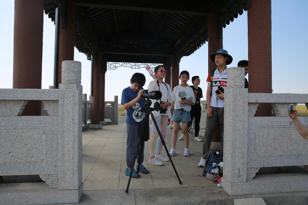 发布时间:2022-10-09 点击量:122810月2-3日国庆期间,来自广东广州、浙江杭州和河南洛阳的中小学生,在江西省生态学会的专家带领下,走进鄱阳湖,在永修县吴城镇和余干县康山乡,分别参观和考察了鄱阳湖国际重要湿地大湖池、常湖等的干旱情况,了解了鸟类的六大生态类型:涉禽、游禽、猛禽、攀禽、陆禽和鸣禽,仔细观察了这些鸟类喙和趾的差异及生态习性,并体验了水鸟的样点调查与林鸟的样线调查方法,仔细辨识和记录了白鹭、中白鹭、大白鹭、苍鹭、东方白鹳、灰鹤、鸿雁、斑嘴鸭、环颈雉、普通鵟、戴胜、家燕、珠颈斑鸠、乌鸫、斑鸫、白头鹎、丝光椋鸟、大山雀等鸟类。
